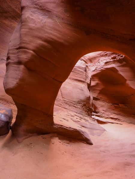 This is an excellent easy hike through Wire Pass into the famous gorge of Buckskin Gulch. You can extend the day hike as far as you wish by exploring Buckskin’s narrows either up- or downcanyon.