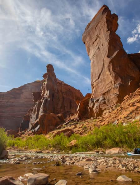 Another backpacking trip near Blanding, the Owl Creek-Fish Creek Loop, Cedar Mesa is a multi-day trip through two desert canyons. Spy three arches, rock art and ancestral cliff dwellings along the strenuous 17-mile loop. Difficulty: Strenuous.