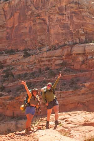 Though those four days were chock full with laughs and great conversation, a particularly sweet and empowering moment occurred on day two in the backcountry. The morning started out breezy and cool, but by afternoon the wind had died, and it got quite warm—just in time for a 1,200-foot-elevation-gain climb along the aptly named Frying Pan Trail. While I basked in the beauty of multilayered desert scenery along the way, which included several panels of pock-marked sandstone canyon walls, called tafoni, and a bird’s-eye view of the seven slots canyons known as The Wives, I also found myself digging deep to keep me and my fully loaded pack moving up the trail. The group’s typically animated conversation waned as we made the final trudge to the ridgeline. When I finally arrived at the top, I immediately dumped my pack and stretched out on the ground. One by one, the other women joined me, each as red-faced and sweaty as I was. When we’d all made it, we laughed, enjoyed the ridgeline’s cool breezes and linked arms to take a celebratory group photo.