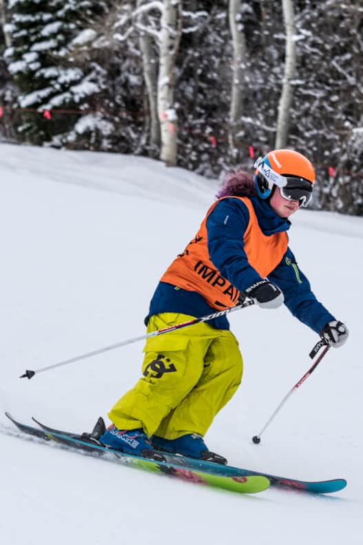 Madi joined the NAC ski team but soon learned her high level of vision didn’t fit into the paralympic category required to compete at the highest level. “I still consider myself as the team mascot, and I cheer from the top and get everyone pumped up and ready to race,” she says. “And I’m still on the mountain and get to ski.” (Read: “Adaptive Skiing: Youthful Inspiration”)