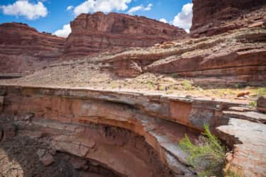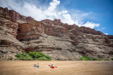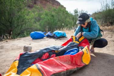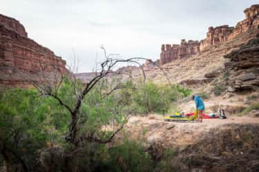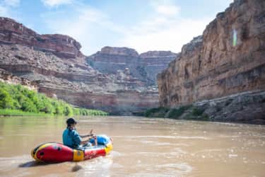 "Your third day finds you floating back through the confluence with the Colorado, and down to Spanish Bottom. Taking out on your starting side of the river, it’s time to roll up your boat, stash it on your pack and begin the trek up Red Lake Canyon to a campsite for the evening."