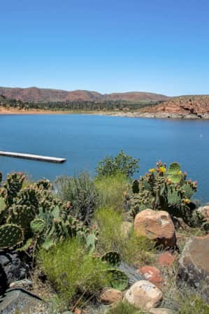 Surrounded by sandstone and lava rock mountains, the park is mostly a day-use area for water sports, picnicking, swimming and simply lounging by the water keeping cool. The 240-acre lake is popular in the summer for all manner of boating action, from stand-up paddleboards (SUP) and kayaks to jet skis and power boats. The fee is $10 for day-use and that includes watercraft launches at the boat ramp.