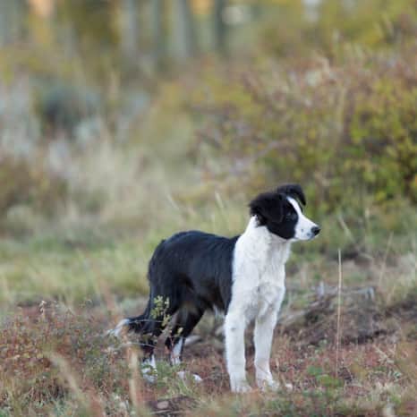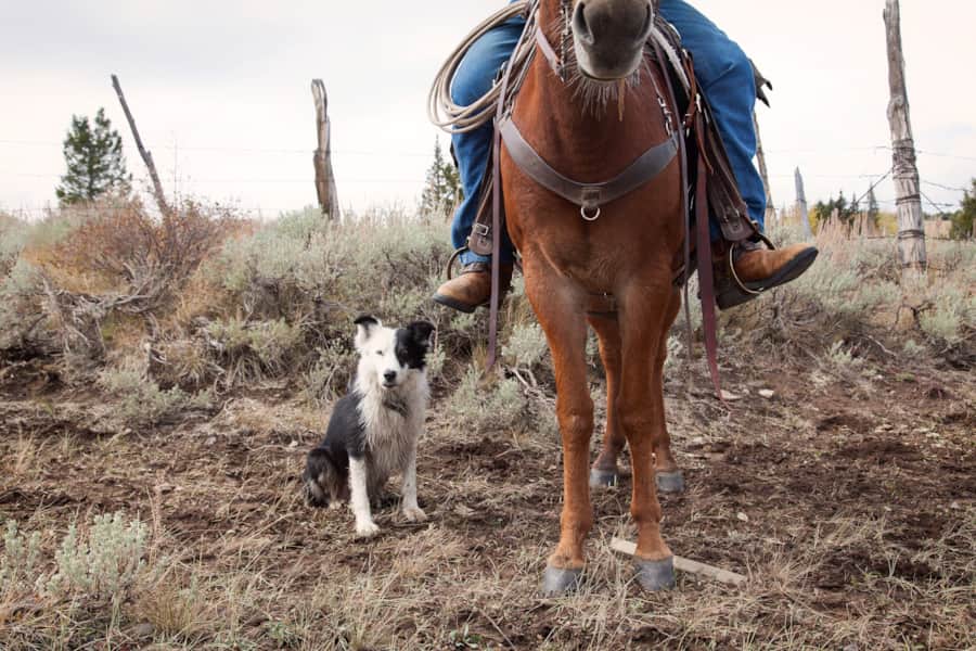 Says Jensen of the puppies, “When they’re old enough to pay attention, we work them with the older dogs. They pick it up so damn fast.” Watching five-month-old pups Belle and Hannah mimic their mother, Katie, and semi-retired grandmother, Laurie, it’s easy to see their natural excitement and affinity for the work. Too young still to go on the big roundup thousands of feet down Sheep Canyon, Hannah and Belle spend their days exploring the ranch and entertaining guests with their antics.