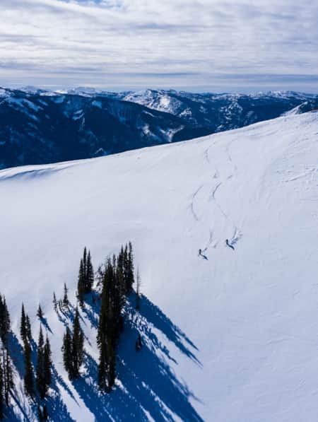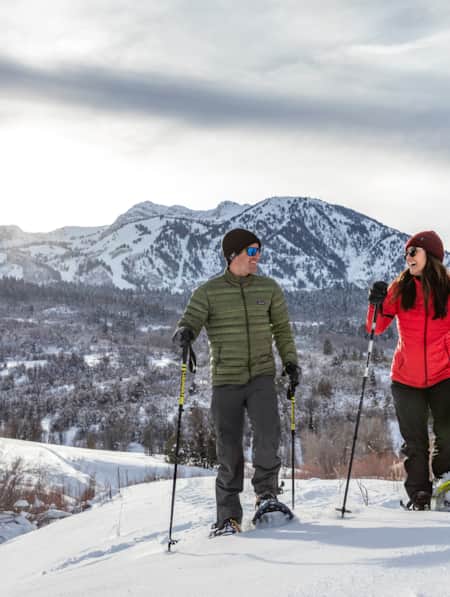 Round Valley, a network of 25 kilometers of trails weaving across rolling hills, has multiple trailheads, steep ascents and fast downhill. The most popular trailhead is located in Quinn’s Junction. These trails are dog friendly and you’ll probably pass a snowshoer and snowbiker or two as the area is multi-use and free.