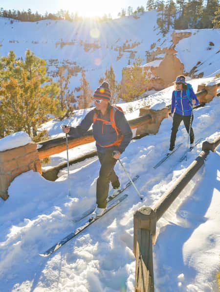 Cross country skiing is easy to learn and even beginners will be swooshing along in no time. That being said, premade tracks require certain etiquette to keep the tracks in good condition, and learning skills for descents and glide will probably require at least an introductory lesson. Providers like White Pine Nordic Center and Soldier Hollow Nordic Center can help you with lessons, tours and rentals.