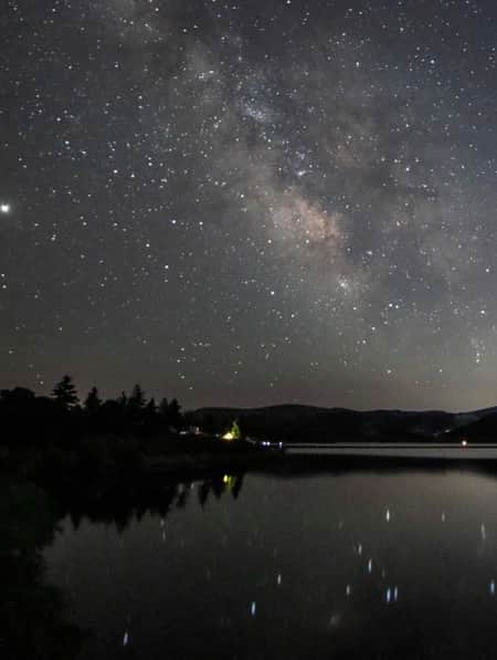 Jordanelle State Park is situated on the east side of the Wasatch Mountains. Although the park is close to Park City, Midway and Heber City — the surrounding hillsides and mountains provide a blockade for light pollution. The park hosts dark sky events and its Rock Cliff Nature Area boasts the darkest skies in the park.