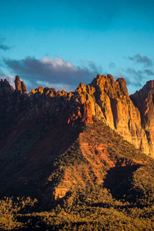 The Crags lie on Bureau of Land Management (BLM) public lands outside of Zion National Park. The Eagle Crags lie at the northern end of a jutting rock peninsula that extends north from 7,363-foot Canaan Mountain, a huge sandstone massif flanking the south side of the Virgin River’s broad gorge. Though just outside the popular park, hiking the trail to Eagle Crags is a rewarding trek to a wild place offering sweet solitude and distant views.
