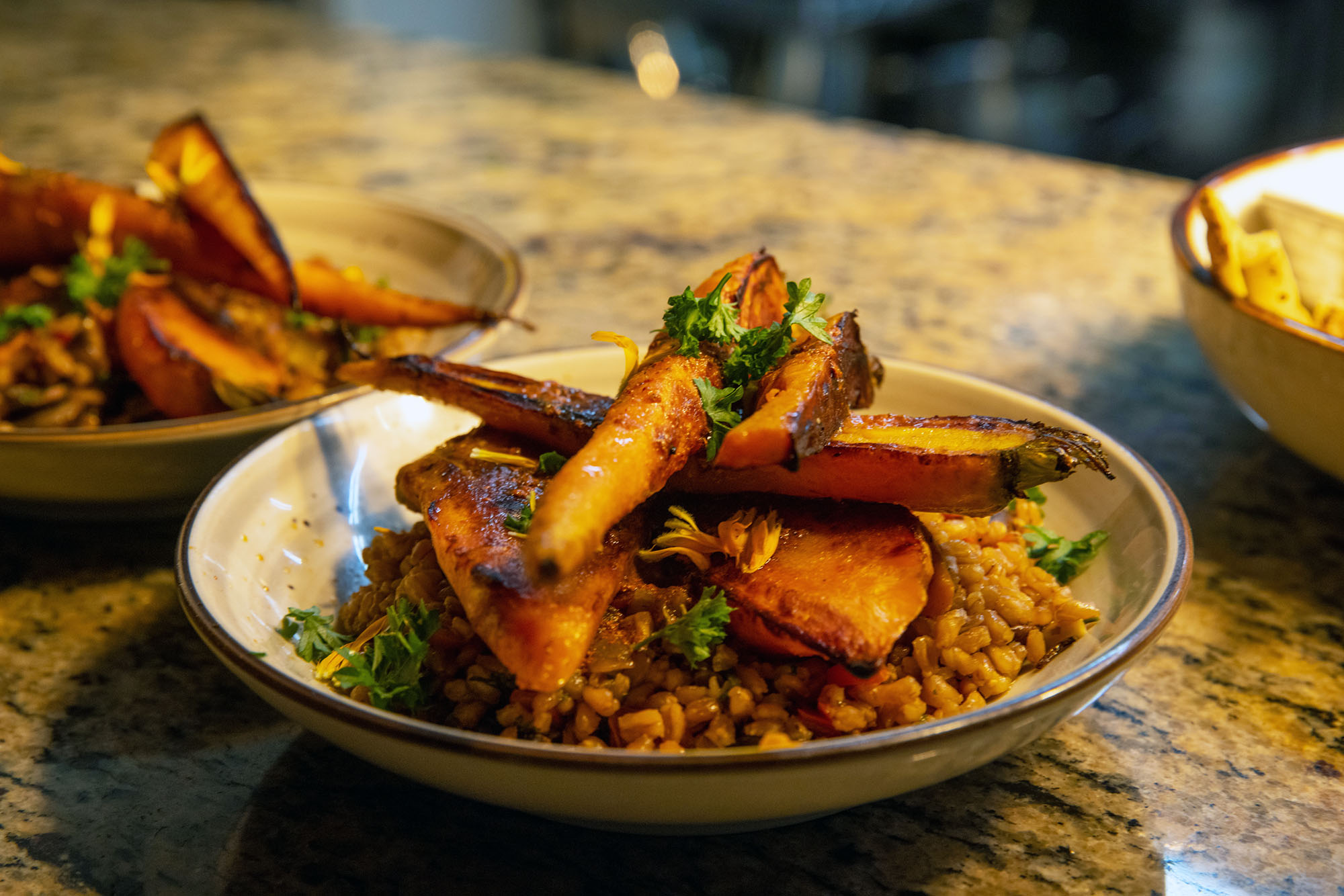 Sitting in the heart of outdoor adventure in the town of Escalante, Escalante Outfitters provides visitors with gear and guides, beers and bites. They offer made-to-order sourdough pizzas and other vegan, gluten and dairy-free dishes for lunch and dinner, as well as strong Wi-Fi — that’s as rare and decadent as black truffles in this remote area of Utah — and strong coffee each morning (“Esca-latte”) made with Utah roasted blends.
