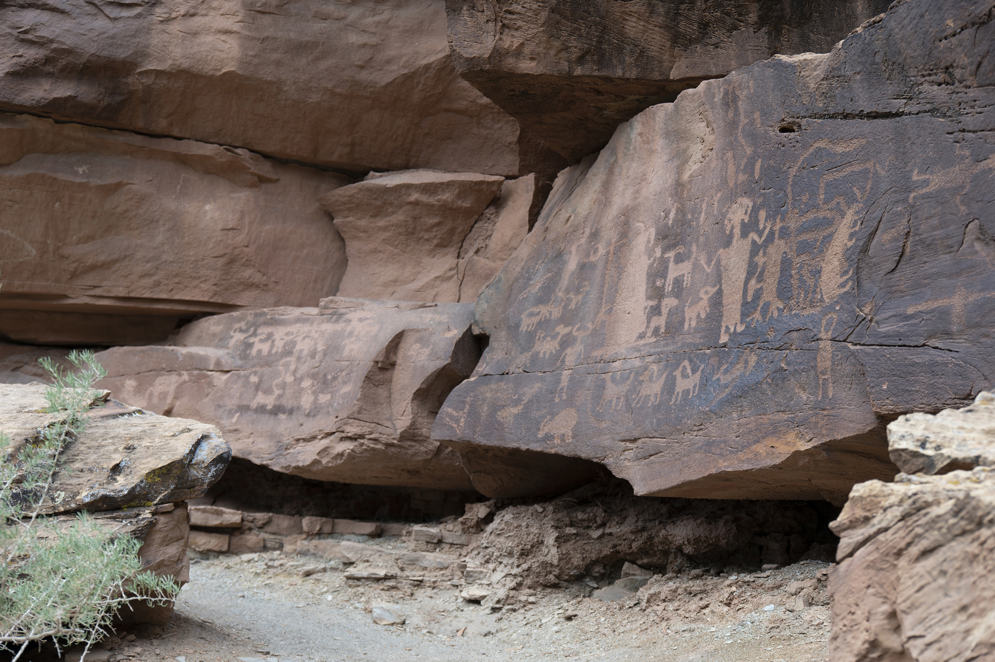 Newspaper Rock is located 15 miles west of U.S. 191 along the Indian Creek Corridor Scenic Byway in the Indian Creek unit of Bears Ears National Monument. The rock is called Tse' Hane in Navajo, or “rock that tells a story.” Hundreds of petroglyphs here feature a mixture of forms, including pictures resembling humans, animals, tools, and more esoteric, abstract things. The 200-square-foot rock is a part of the cliffs along the upper end of Indian Creek Canyon (Read: Touring the Indian Creek Corridor Scenic Byway). Keeping these places and landscapes safe is everybody's job. Please avoid adding any marketing to rock imagery sites and report any vandalism.