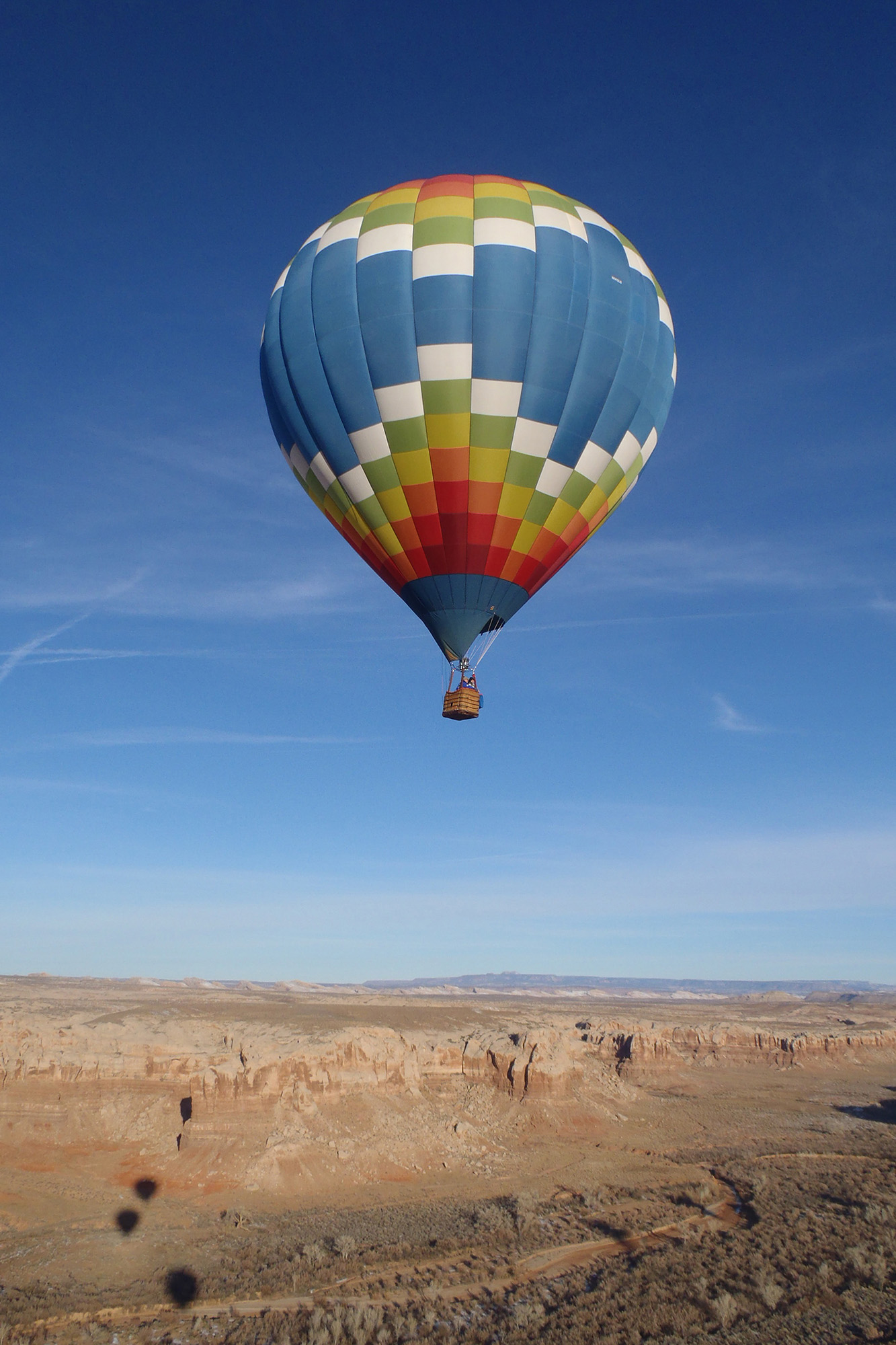 Serendipitous winds carry spontaneous fliers over the recreation areas surrounding Kanab, a base camp for adventure. (Kanab Balloons & Tunes Roundup)