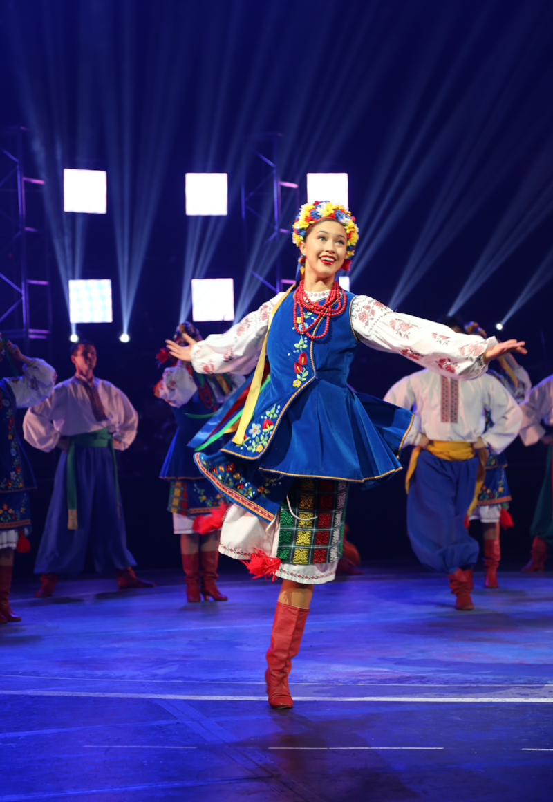 Their puffy sharavary whipping around them, agile men with cores of steel kick their legs then drop to the floor. They yell. The spring back up chanting “Україна.” They fall again. Others soar above the ground. Women surround them in rainbows of red, white, blue, green, and yellow — while the remaining men prepare for their next move, flourishes of dance representing a profound cultural identity. Willing their muscles through the fatigue, the goal for all involved is to finish strong, with a confidence befitting this proud tradition. The audience applauses, legs are finally able to take their long-awaited rest in the hopes to have made Ukraine proud. The hopak is the national dance of Ukraine. But this is not Ukraine.