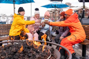 "Friends gather and swap stories that will become warm memories near one of the outdoor fires at Canyons Village."