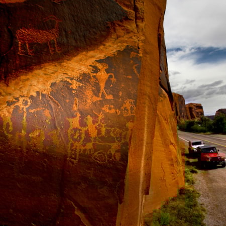 Just a half-hour west of Moab, Canyonlands National Park is a treasure trove of pictographs and petroglyphs with a variety of sites throughout the park. The two most significant options are:
