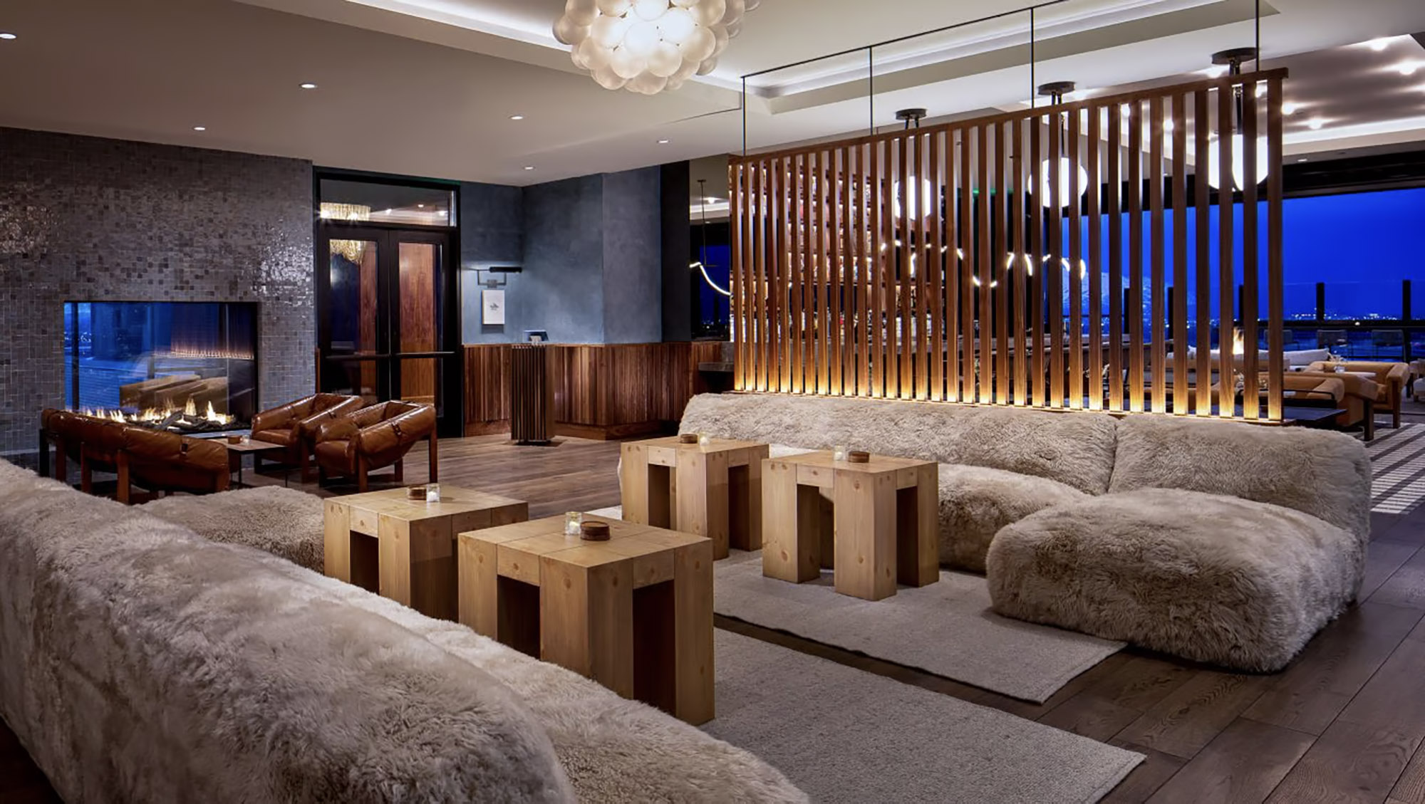 The bar’s rooftop allows guests to gaze out over the lights of Salt Lake City and the towering Wasatch Mountains.