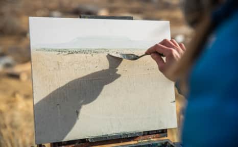 On the other side of the Manti La Sal Mountain range, another desert oasis of artists live and work in a town pioneers once built: Spring City. The town’s artists include the well-known “Matriarch of the Arts,” Ella Peacock, who painted plein air landscapes in natural tones which she set in her hand-carved frames. Contemporary and successful artists such as Lee Udall Bennion and Kathleen Peterson thrive in making tribute to the land by living on and with it, taking in colors, scenery and history as part of their daily and artistic practice. “Where I live and how I live has everything to do with my art work,” Bennion says. “I have never painted too far from home, meaning I paint people, animals, places and objects that have meaning to me and that I am very familiar with. I think finding a place on earth where you feel at home and connected is extremely important.” (Read: Gleaning a Small Town's Harvest)