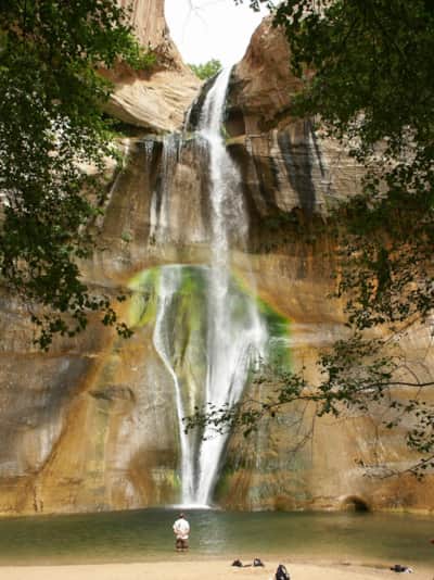 - Lower Calf Creek Falls is a popular 6.2-mile roundtrip waterfall hike. Plan for 3.5 to 4 hours to enjoy the stunning canyon, stream, and, of course, the waterfall. It begins at the Calf Creek campground, located between Boulder and Escalante. For a less-crowded option, hike Upper Calf Creek.