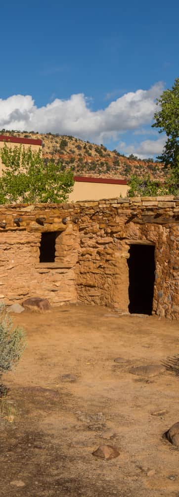 Behind the museum, there is a self-guided tour, complete with interpretive signs, along a short trail. The first site you’ll come to on your adventure is an L-shaped building, a replica pueblo that has six rooms, set up to depict what the buildings would have looked like nearly 1,000 years ago. After looking through the rooms, you can continue along the trail past ruined walls and other structures. You may notice the burnt building supports, which suggests the town was abandoned after a massive fire.