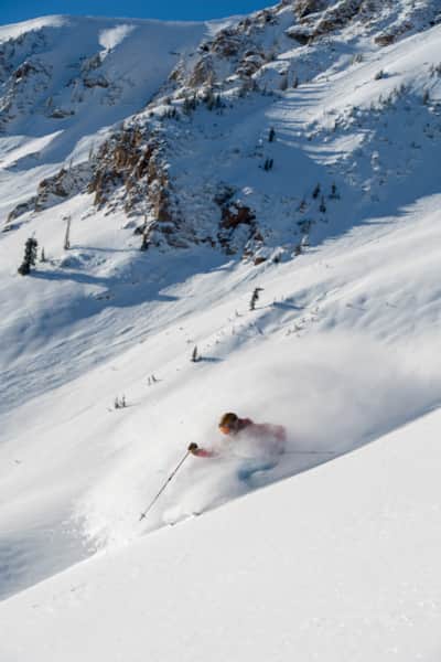 On a big powder morning, the best run to hit is Westward Ho, a black diamond run off the Wildcat lift. A trip up the old double chair offers jaw-dropping views of Mount Superior and Mount Baldy before depositing you atop some of Alta's best tree skiing terrain. From the top of Wildcat, traverse skier's left into Westward Ho. The deeper you go, the fewer skiers you'll see. From powder stashes and glade skiing to fun natural features, Westward Ho's playful terrain is where locals can be found on a powder day.
