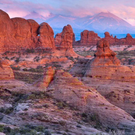 Adventure in Arches National Park where 300 million years of erosion has resulted in unbelievably dramatic landscapes that look like they were sculpted by giant mythological beings rather than the processes of time. Arches National Park contains about 2,000 windowed arches, towering spires, harrowing hoodoos and precarious pinnacles on display, including Delicate Arch, perhaps Utah's most iconic feature. A paved 36-mile scenic drive from the park entrance provides numerous parking areas for trail access and scenic overlooks. Tip: If you're planning to visit Arches between April and October, you'll need to reserve a timed entry ticket for access to the park. Visitors without a timed entry ticket may enter the park before 7 a.m. or after 4 p.m. Overnight in Devils Garden Campground or Moab. (Read: How to Visit Arches)