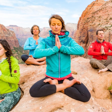 Then it's time to head to the incredible Zion National Park area. Bliss out with yoga and a hiking adventure through the breathtaking canyon walls, a soak and massage, then a decadent dinner and labyrinth walk.