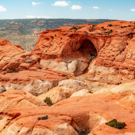 A desert "wash" may not sound exciting, but the river washes of Utah's desert actually serve as some of the most navigable pathways through the area's red rock mazes. They're an incredible way to stroll through geological history written in the layered colors, textures and patterns of the canyon walls above you. Grand Wash is just one of these places; just a few miles' hike takes you through some classic "narrows," arriving at Cassidy Arch, named for the area's famous Butch Cassidy outlaw history.