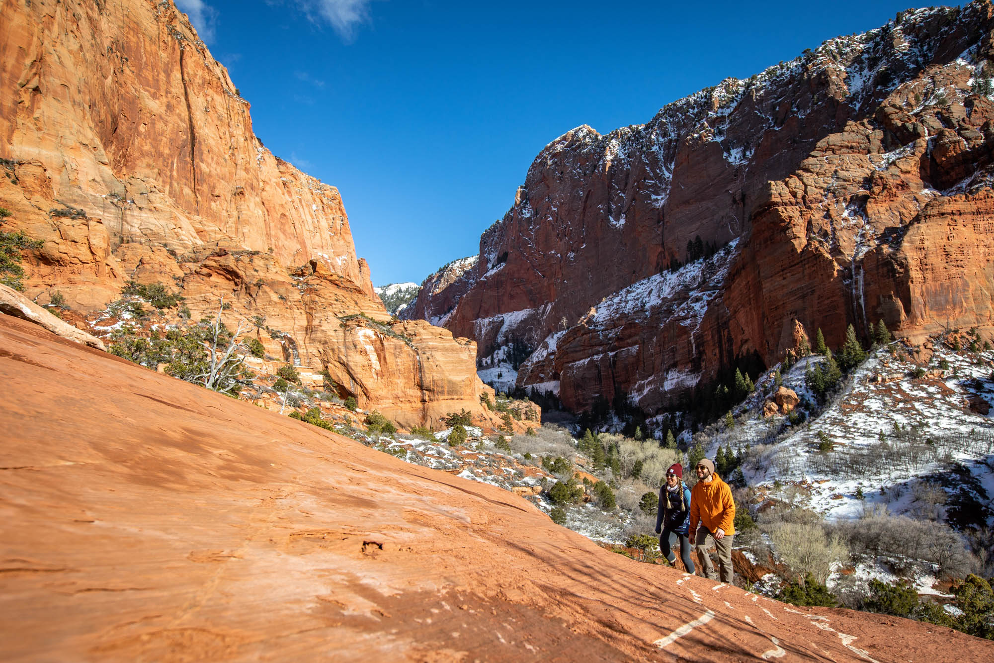 - Hike Slowly and Find Traction: Certain trails can get very icy, especially in the red rock regions of Southern Utah. Some areas recommend packing crampons or microspikes. Otherwise, just make sure your footwear has plenty of tread and you take time to plant each step.
