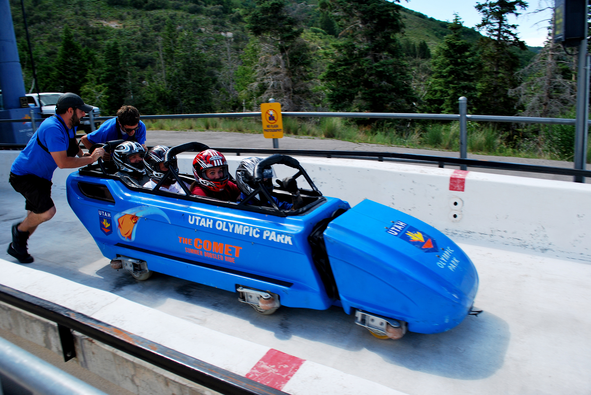 The bobsled track is one of the Utah Olympic Park's most iconic attractions. Visitors can experience the same thrill in winter or summer and take a trip down the bobsledding track with a professional rider. The Comet Bobsled reaches over 60 mph and riders experience 4-5 times the force of gravity. Riders must meet age, weight and health requirements to participate. Tickets must be booked beforehand, so make sure to reserve your spot in advance.